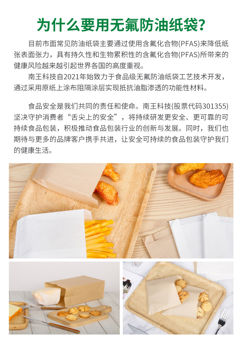 无氟防油纸袋不含氟化合物(pfoa/s),可直接接触食品,安全健康。防油性能优异(防油等级kit-6 ...